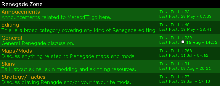 @Dthdealer Neat trick with the post ![]() That topic became assigned to the Renegade Zone forum during the recent restructure. I moved it back over. Thanks to letting me know. James You need to login to create posts in this thread. |